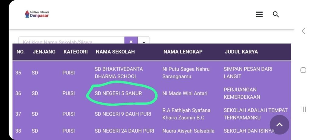 Antologi puisi siswa “Terbitnya Sajak di Denpasar” pada tahun